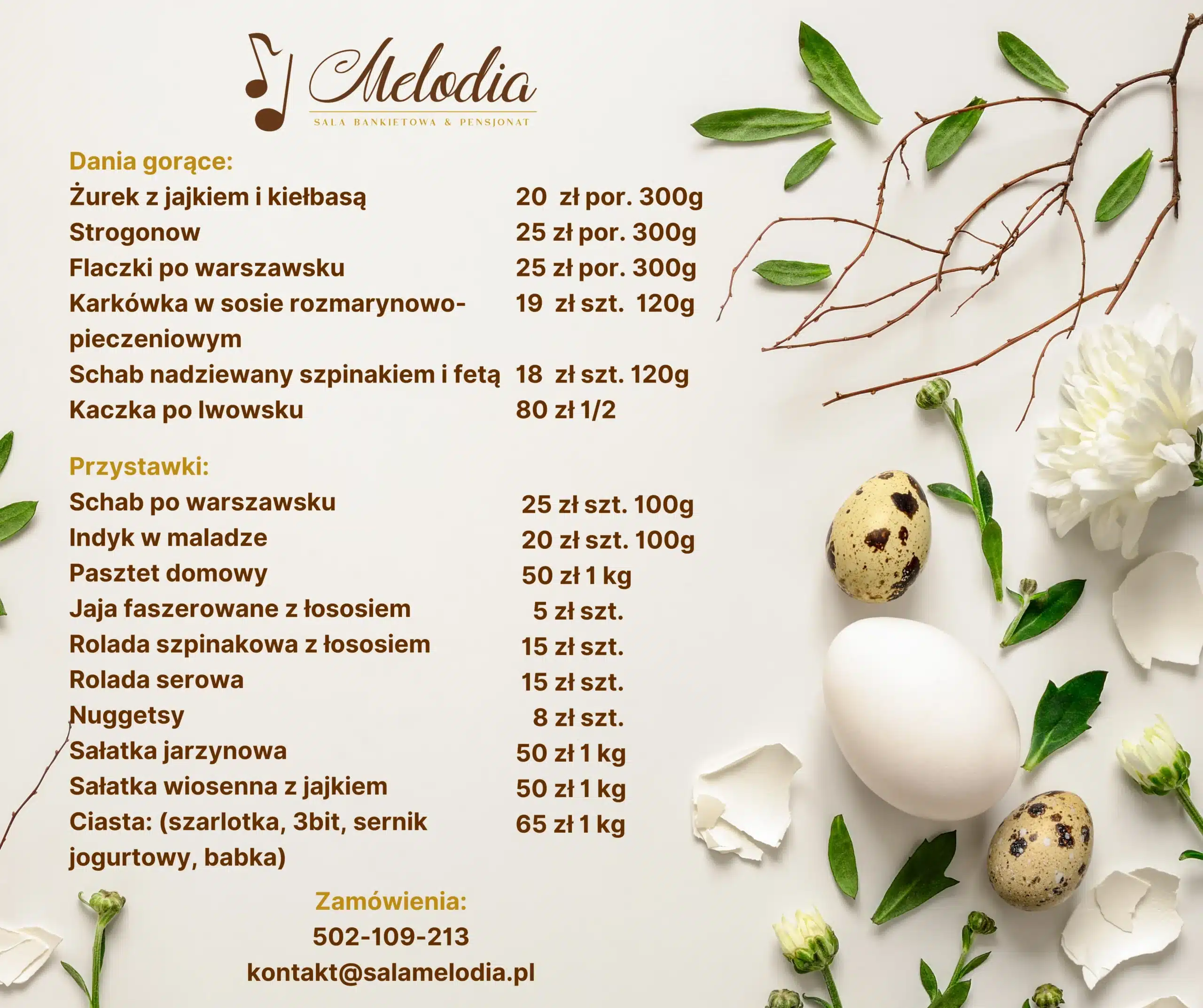 Melodia to jedna z najładniejszych sal bankietowych w tej okolicy. Wystrój sal, ogród, miejsce są po prostu super. Jedzienie badzo dobre i co ważne dużo. Goście nie byli najedzeni a przejedzeni a to świadczy że było smacznie i bobrze. Właściciele bardzo przemili i pomocni i bardzo konkretni. Szukając miejca na Nasze przyjęcie ślubne dostawałem w odpowiedzi że: pokrojenie tortu 5zł od tależyka, że 15 zł od otworzenia butelki wódki, że 200zł za wniesienie własnego tortu i na koniec 10% od całości rachunku... Właściciele Melodii nie liczą za takie rzeczy. Konkretnie cena od osoby i w tym wszystko, tort, chleb na powitanie i dużo dużo wiecej. Dlatego serdecznie polecam. Było wszystko tak jak się umawialiśmy i dlatego bardzo DZIĘKUJEMY...